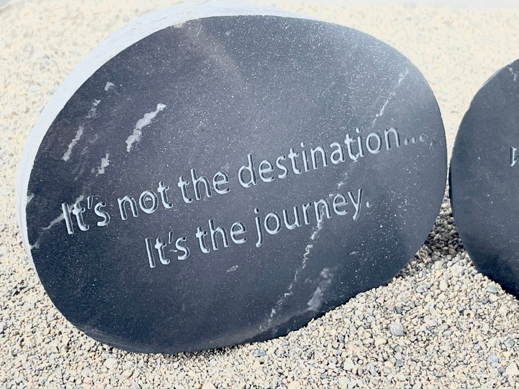 Life - "It's not the destination....It's the Journey" carved into the smooth polished faces of a natural stone cut in half. Engraving is about 1.5 mm deep.